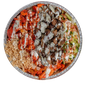 Seasoned gyro and chicken served over rice, with our homemade white sauce, lettuce, tomato, onion and cilantro.